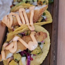 The place is cheerfully decorated with colorful artwork, sneakers, and bright piñatas. It's a very fun vibe! We were there to celebrate our birthdays, and this turned out to be the perfect place. Be warned, this place is extremely loud! They have a DJ, and the music was great, but you have to yell if you want to have a conversation. We actually debated if we should stay or go somewhere else, but thankfully, we decided to stay. We ordered the esquite, chicken quesadillas, tacos de alambre, birria tacos, and the mar y tierra. All of the food was really good and well seasoned. My favorite was the tacos the alambre, the steak was so flavorful! The service here was excellent! Even though they were busy, they continuously checked on us, bringing out fresh plates and napkins. My friend told them we were celebrating our birthdays, so they sang happy birthday and brought out the guy dressed as a luchador. If you want to celebrate a birthday or just have a very fun time, this is definitely a great spot.